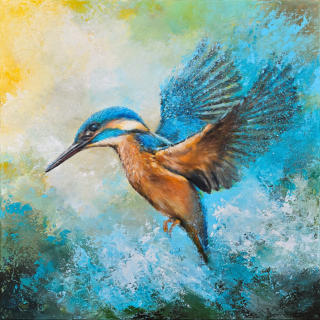 Ein Eisvogel, dargestellt in einem Ölgemälde